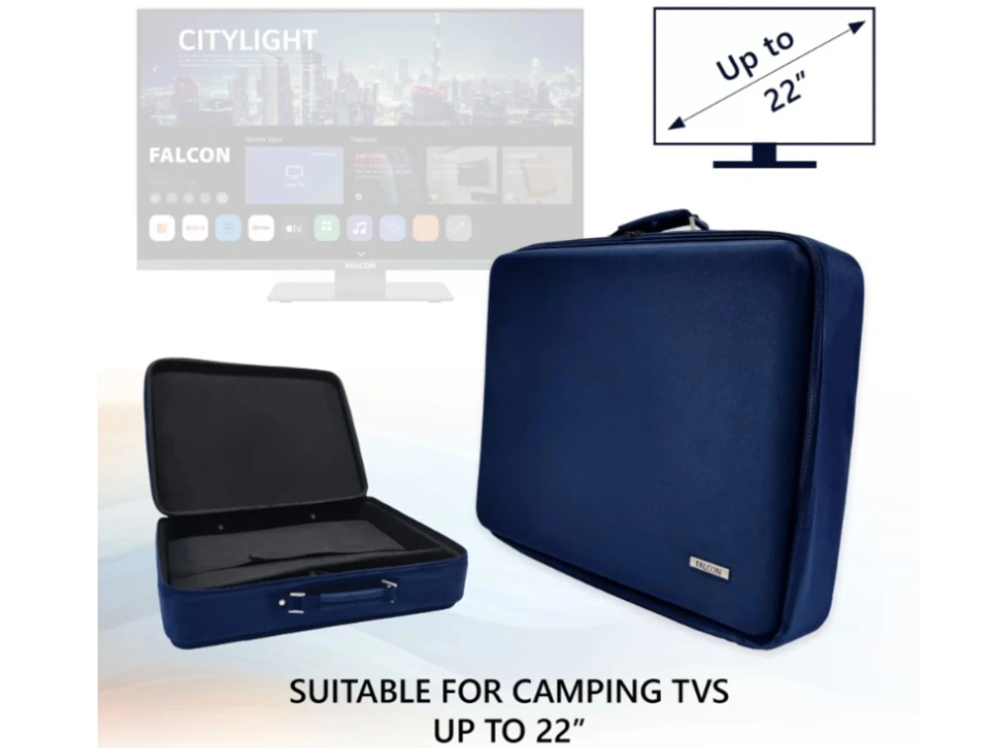 The Falcon Protective Carry Case provides a safe and convenient way to store and transport televisions up to 22 inches. Designed with travel and protection in mind, it is the ideal accessory for caravan, motorhome, campervan, and camping TVs, helping keep your equipment protected when not in use.