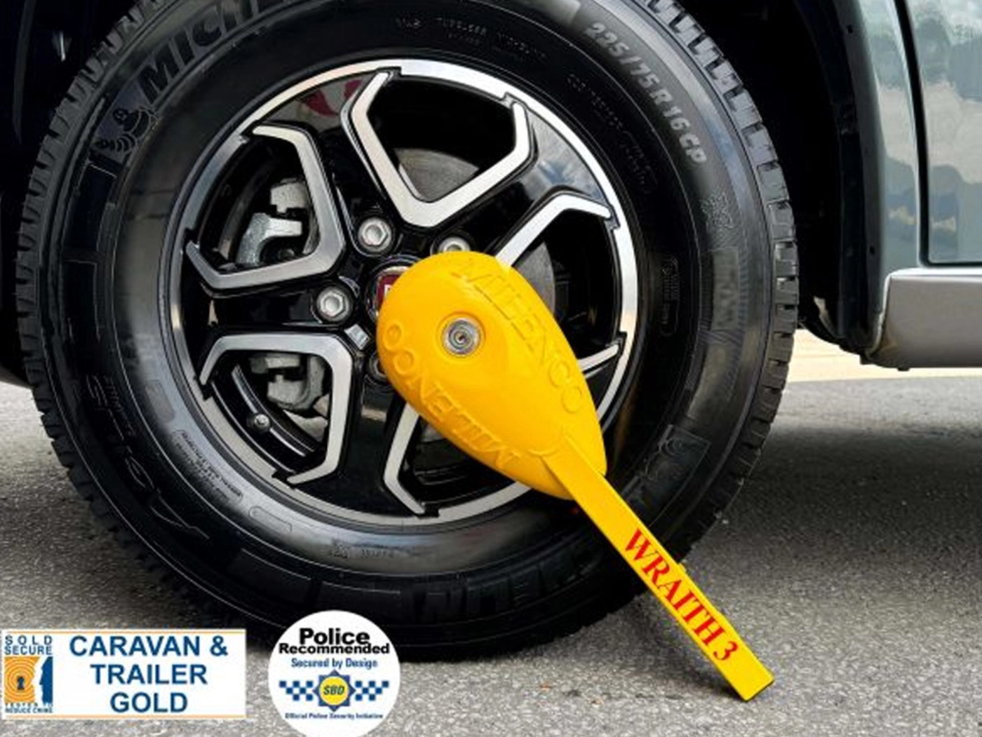 The Wraith 3 is a compact, lightweight motorhome wheel lock with a new integrated leg for even easier fitting. It secures directly to a dedicated wheel bolt, while the wrap-around leg prevents wheel rotation for maximum protection. This highly visible deterrent delivers exceptional, unmatched resistance to attack.