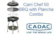 cadac carri chef 50 with plancha combo The 47cm ceramic plancha non-stick multi function ceramic coated grill plate is 50% ribbed and 50% flat for ultimate versatility. The dome lid with thermometer allows you to oven roast meats, steam or bake. Offers an optional range of interchangeable drop-in tops to extend your cooking. Easily pack down into the strong carry bags included.