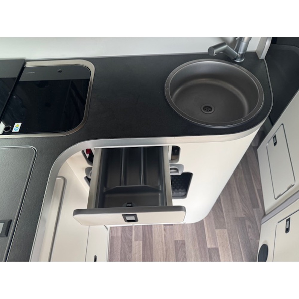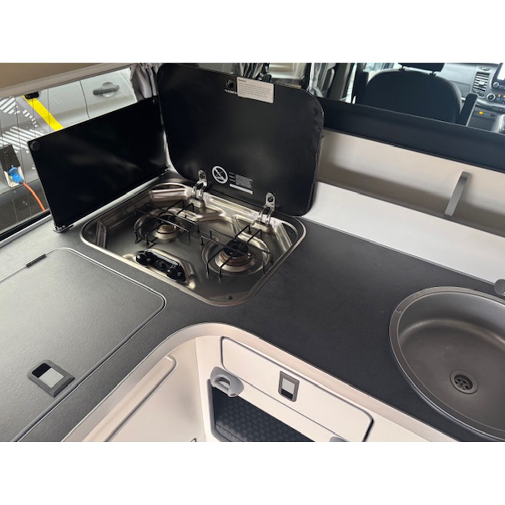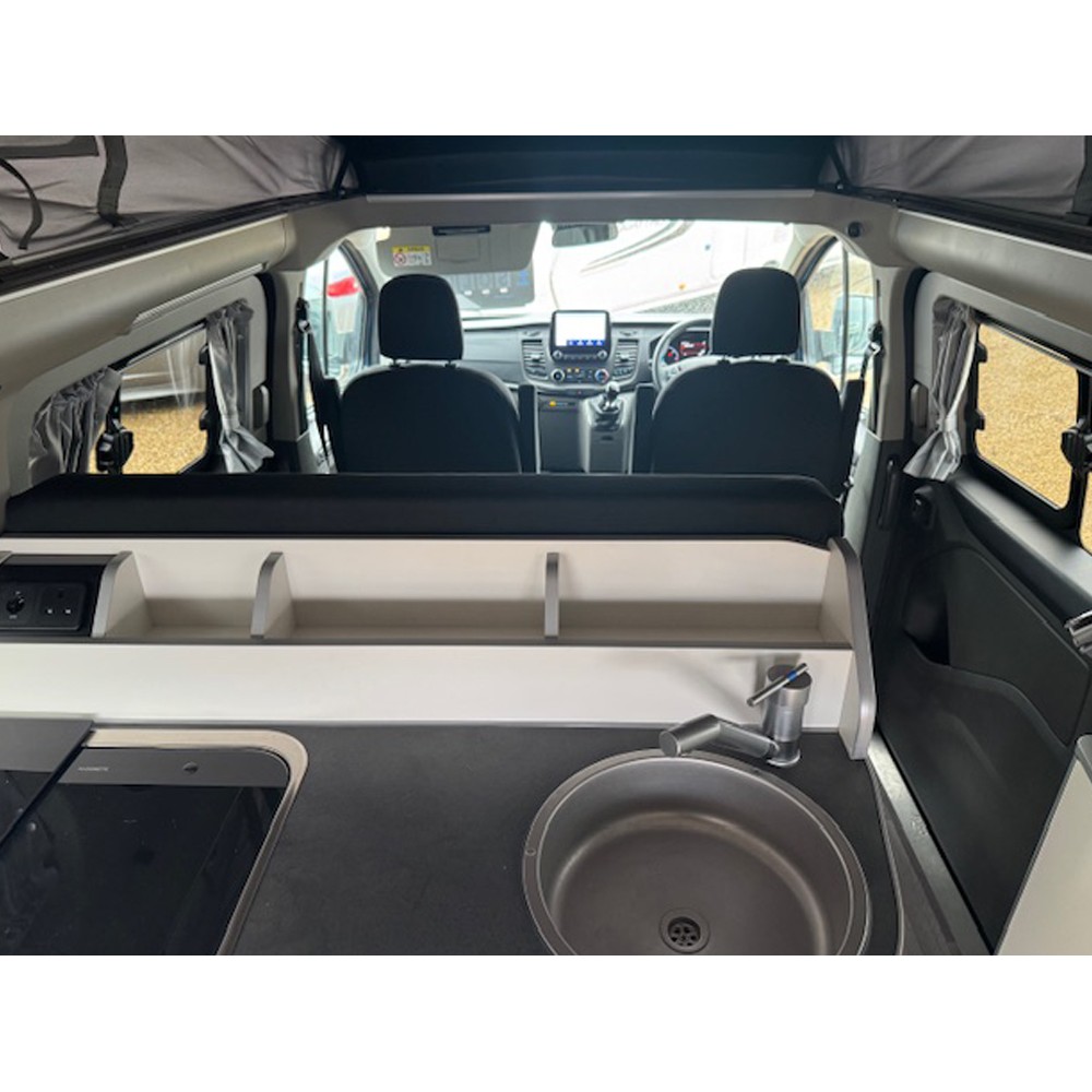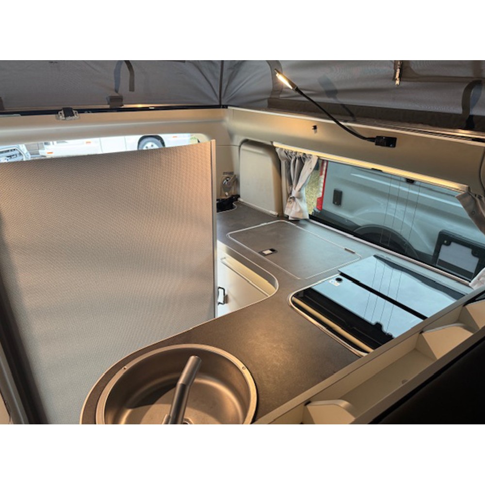 Built on the trusted Ford Transit Custom chassis, the Nugget Plus combines smart German engineering with a spacious, well-designed interior. The pop-top roof provides generous sleeping space and creates an airy, open feel throughout the living area. With 5 seat belts, it’s ideal for families, couples, or anyone seeking a versatile travel companion.