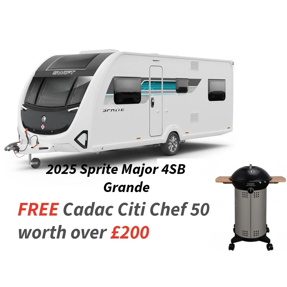 This 2025 Sprite Major 4SB Grande is the very polular 4 berth caravan with fixed double bed and rear washroom. This 8ft wide caravan offer so much more space for moving around the caravan. Enjoy all the refreshed features, but with even more room tom relax and unwind.
