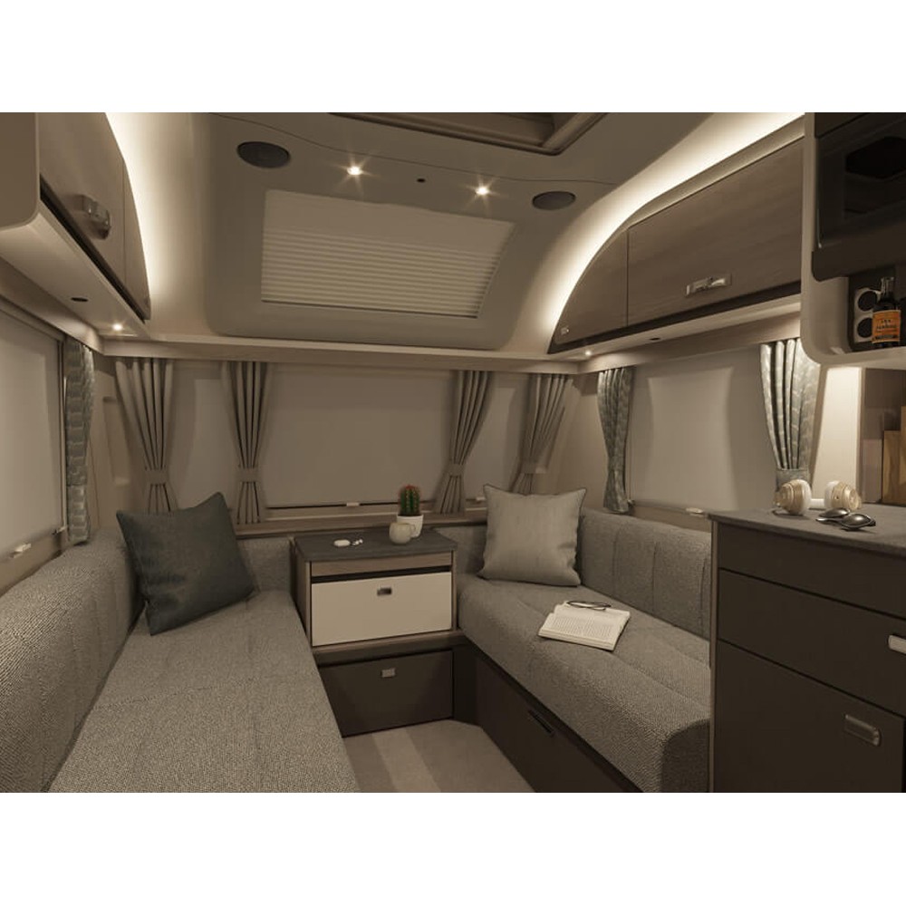 Key Features: AL-KO AKS3004 stabiliser, AL-KO ATC system, New 15" edge alloy wheels, New striking exterior graphics, exclusive LEd light clusters, Thetford 3 burner gas hob with New electric hotplate, New Dometic slimline 142ltr fridge/freezer, Flatbed microwave oven with digital controls, Truma combi water heater and blown heating system and much more..