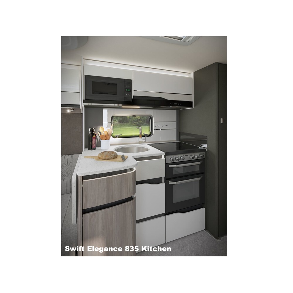 The pinnacle of the touring caravan range is this luxury 2025 Swift Elegance Grande 780. Nothing has been overlooked with it's NEW soft furnishing scheme and the outstanding functionality, comfort and premium features which includes onboard 4G Wi-Fi, Alde underfloor heating, NEW 17" Diamond-cut alloy wheels and NEW Miracle Vanilla Solid surface kitchen worktop.