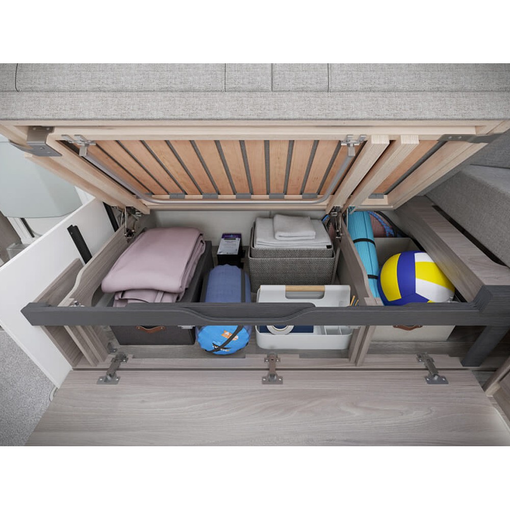 Key Features: NEW E&P hydraulic auto-levelling system, AL-KO ATC system, NEW AL-KO 17" Diamond-cut alloy wheels, 7" LCD colour Swift Command touchscreen system, New stylish exterior graphics, New Aquaclean Cosmic soft furnishing scheme, Dometic 177ltr dual hinged fridge/freezer, Boutique style washroom with illuminated shower console, Alde under floor heating, onboard Wi-Fi and much more.