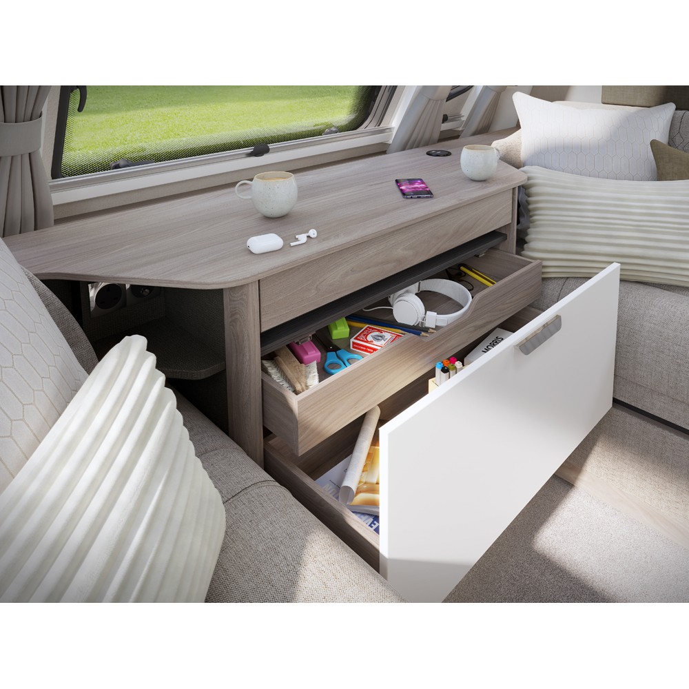 This as-new 2025 Swift Elegance Grande 835 is now available to purchase, offered at an exceptional saving of £6,500 off the RRP. Used solely as our demonstration display model, it has never been toured in and remains in immaculate, showroom condition throughout. Inside, the Elegance Grande 835 boasts the premium quality and luxury the range is renowned for.