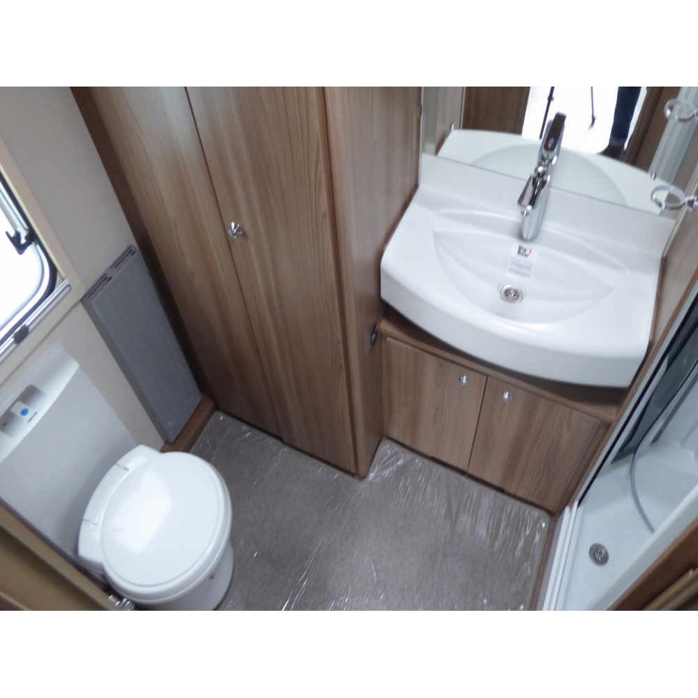 Redesigned washroom with shower console, Ecocamel Orbit shower head with on/off button for a powerful economical shower - Bi-fold shower door retained on track - Thetford C260 Cassette toilet - Domestic style radiator etc..