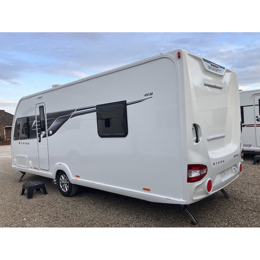 The 2021 Swift Siena 4 SB is a stylish and comfortable 4 berth caravan, perfect for couple or small families. This dealer special model comes with a range of exclusive upgrades, adding extra comfort and convenience. The very popular layout features a fixed double bed for that restful nights sleep and a spacious rear washroom with separate shower cubicle. Modern, practical and well finished throughout, the Siena is a ideal choice for those looking for high quality caravan with a touch of luxury.
